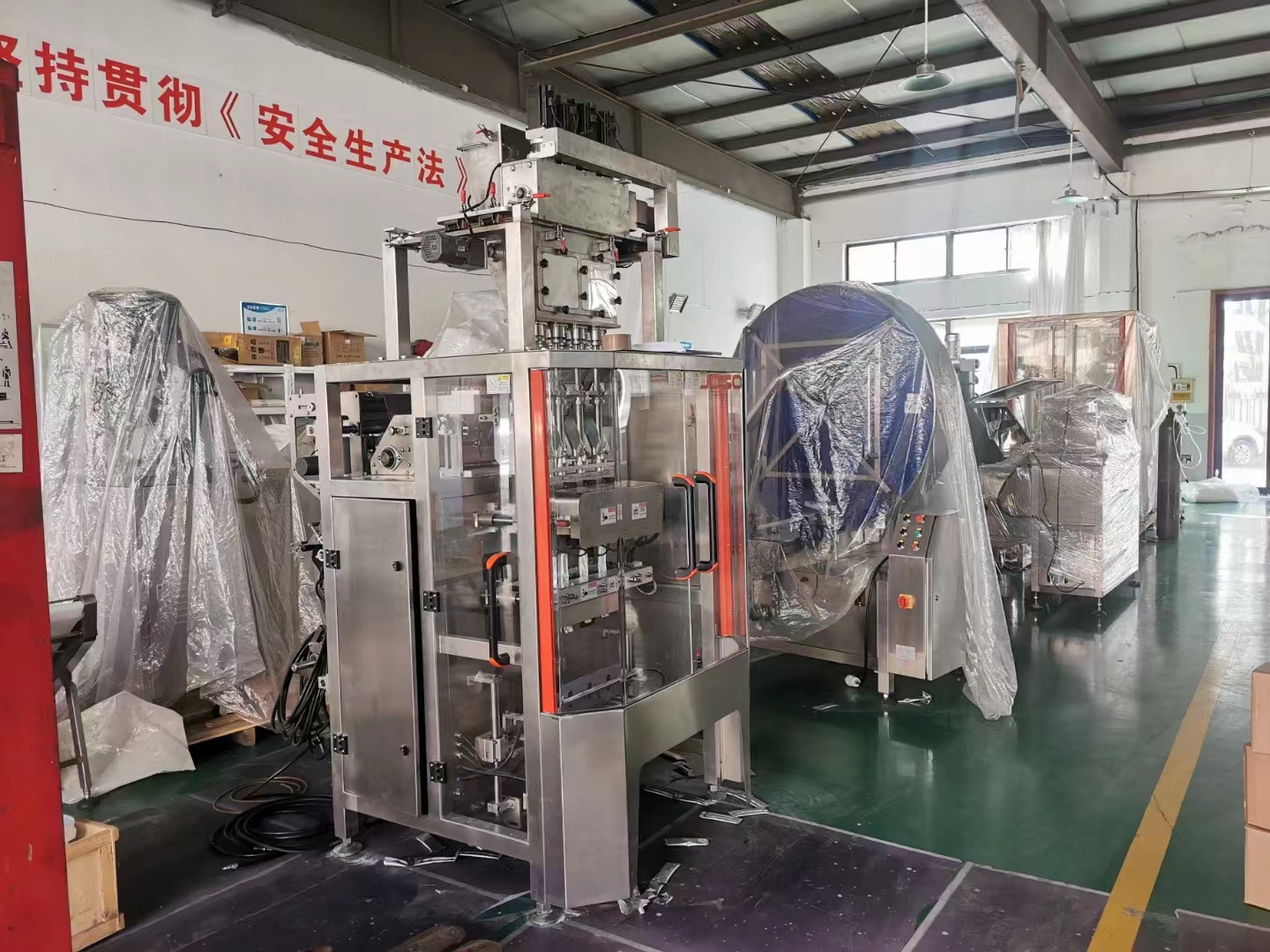 1.原料25KG包裝產線3條,包含原料殺菌,原料混合,螺桿及負壓輸送,成品料倉,機器人裝箱碼垛,底充升降高精度及底充脫氣式主機產線